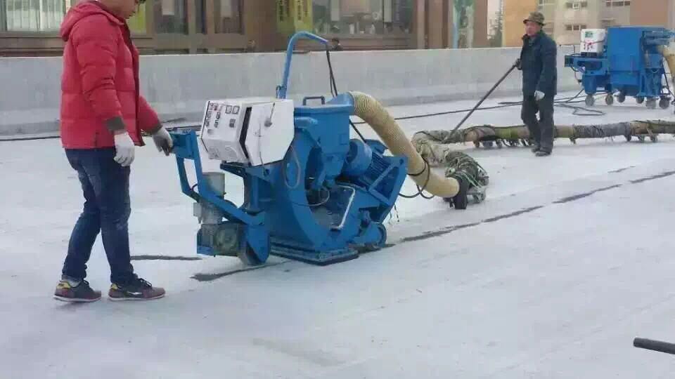 必須先對橋面的浮漿進行徹底的處理。用拋丸機對表面進行拋丸處理,鑿毛機進行鑿毛也可,或者用銑刨機進行銑刨。目前采用拋丸處理的較多。